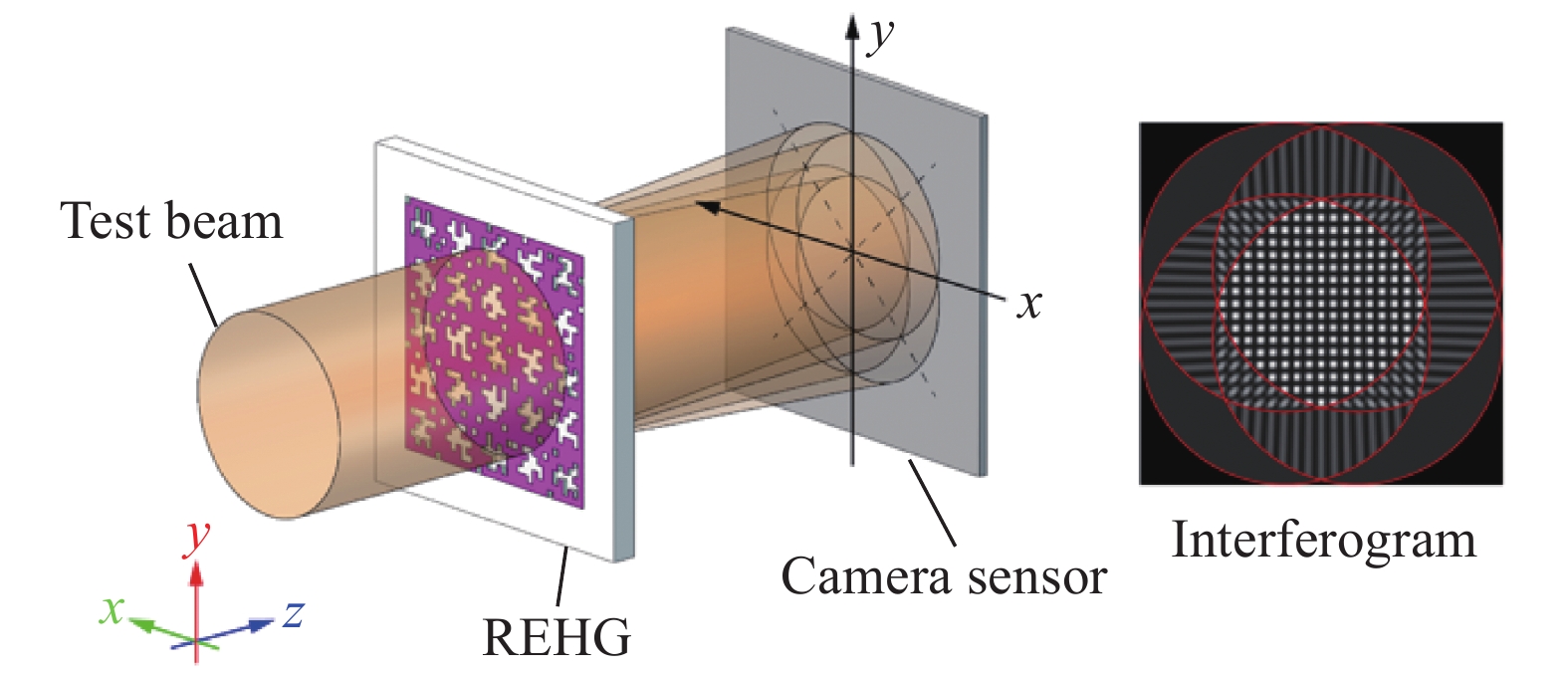 Fig.1.Fase Imaging Principle baseret på fire-bølge lateral forskydningsinterferens ved hjælp af tilfældigt kodet hybridgitter (Rehg)