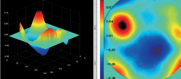 Fig.2.Least Square Wavefront Reconstruction fra fire-bølge lateral forskydning interferogrogram